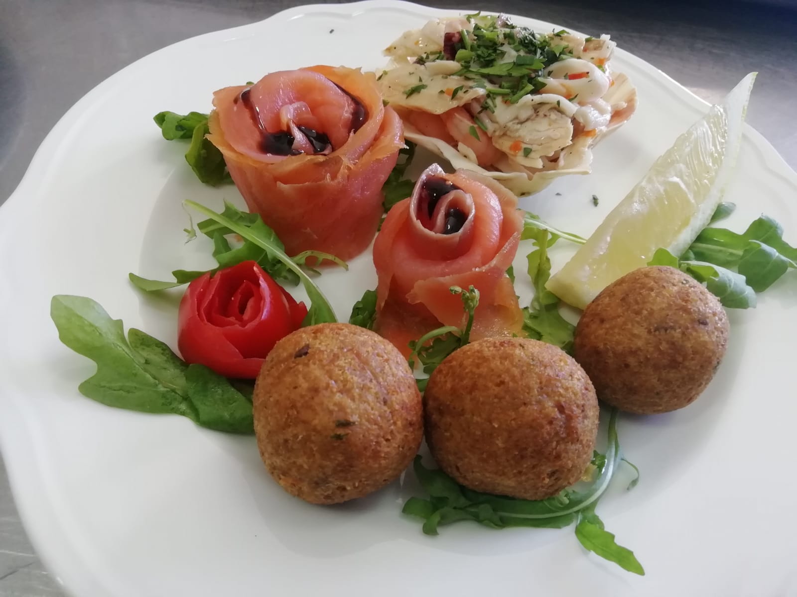 Il servizio di ristorazione è alla carta, con menù a base di pesce fresco, e prodotti del territorio.